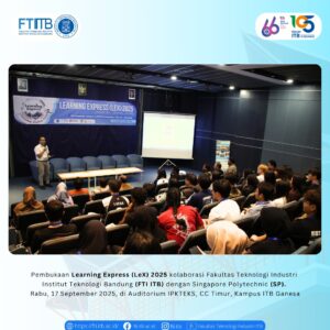 Rabu, 17 September 2025, Fakultas Teknologi Industri Institut Teknologi Bandung (FTI ITB) menyelenggarakan acara pembukaan Learning Express (LeX) 2025 bekerja sama dengan Singapore Polytechnic International.