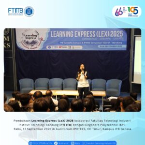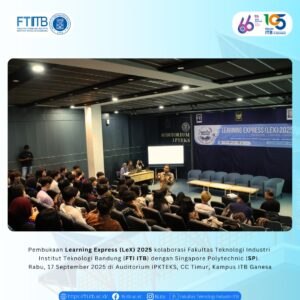 Rabu, 17 September 2025, Fakultas Teknologi Industri Institut Teknologi Bandung (FTI ITB) menyelenggarakan acara pembukaan Learning Express (LeX) 2025 bekerja sama dengan Singapore Polytechnic International. Acara ini berlangsung di Auditorium IPKTEKS, CC Timur, Kampus ITB Ganesa, dengan dihadiri oleh jajaran pimpinan fakultas, dosen pembimbing, serta mahasiswa peserta program dari kedua institusi. Selengkapnya: https://fti.itb.ac.id/pembukaan-learning-express-lex-2025/ #LeX2025 #SPxITB #GalleryWalk #ExperienceBeyondClassroom #InnovationForImpact