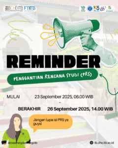 📢📚 Reminder penting nih! Penggantian Rencana Studi (PRS) udah dimulai, kamu bisa melakukan penggantian PRS dari 23 September 2025, 06.00 WIB sampai 26 September 2025,